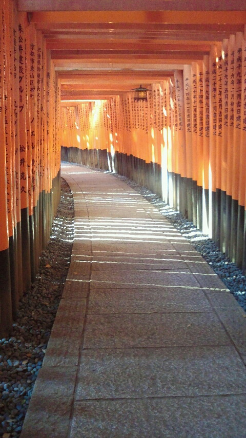 でも、伏見稲荷のお山廻りは、延々と鳥居をくぐりながら階段を登るんですね・・・