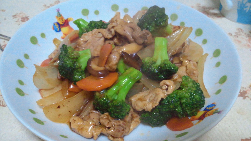 6、ケチャップ大さじ3、顆粒コンソメ小さじ1、お湯・みりん各大さじ1を合わせたものを加えて、煮詰めて