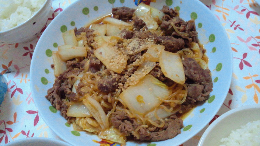 牛肉と白菜で作る、見た目はすき焼きちっくな「白菜プルコギ」と、韓国式ワカメスープ「ミヨック」で、お家で簡単・韓国料理!