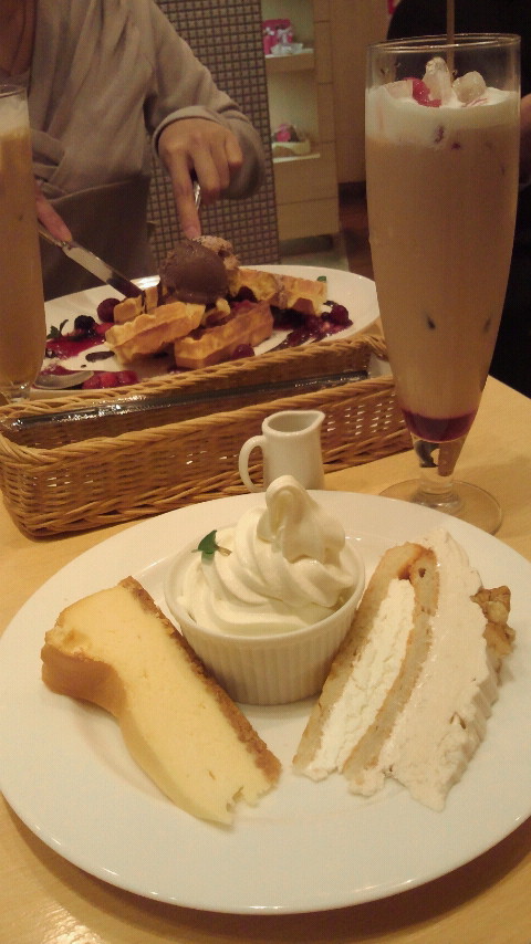 友達はワッフルセット、私はハーフ&ハーフケーキセット。