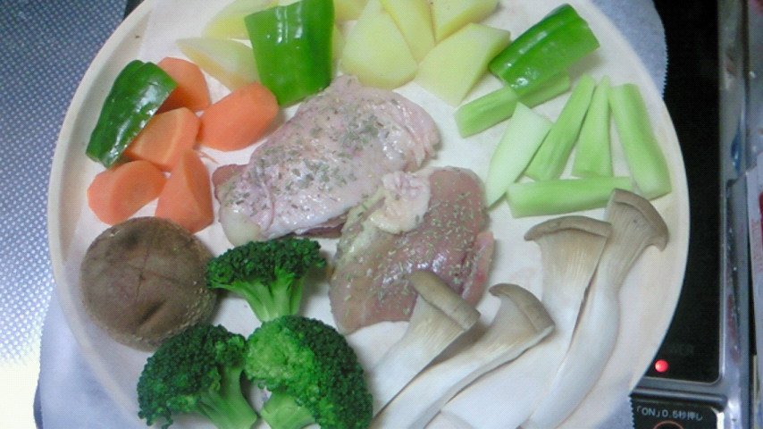 この時、なるべく外側のお野菜に多めにかかるようにしてください。