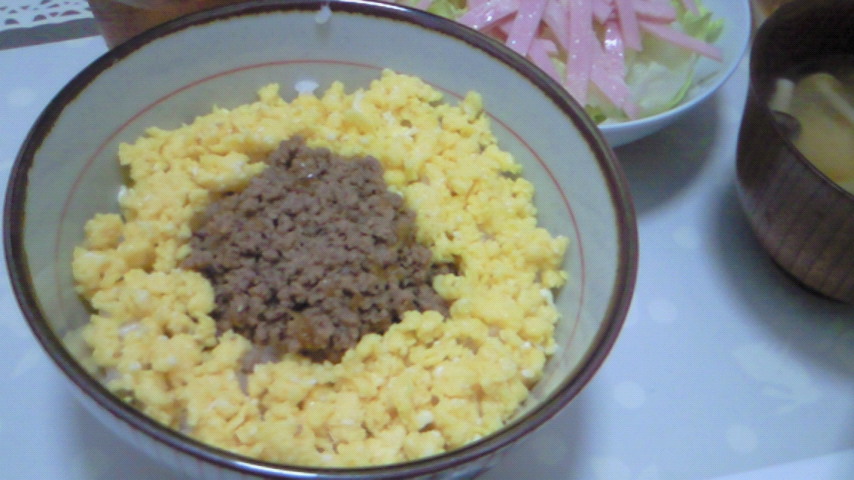 肉そぼろといり卵で二色丼!