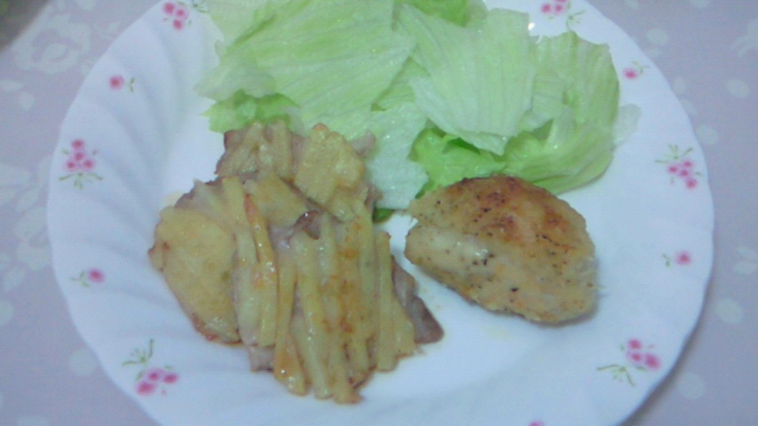 フライパンに移すとき、ジャガイモがはがれおちてしまいますが、豚肉をフライパンに移してすぐに押しつけるようにして乗せればOKです!